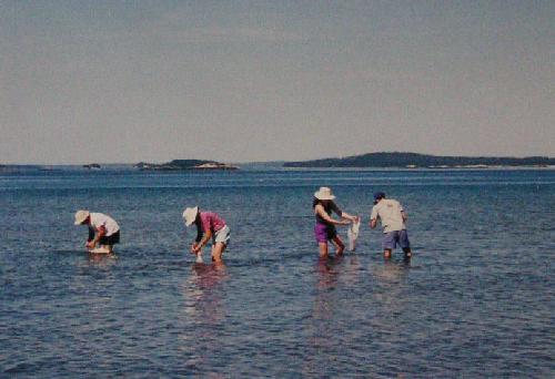 Collect as many mussels as you wish; you can feed many mouths. Young, relatively petite mussels taste best. If feasible, rinse the mussels overboard (in the ocean) in a car for as long as a week, to wash out sand and grit and thoroughly flush the intestinal canals. Do not remove the mussels from the ocean until you are ready to cook them!